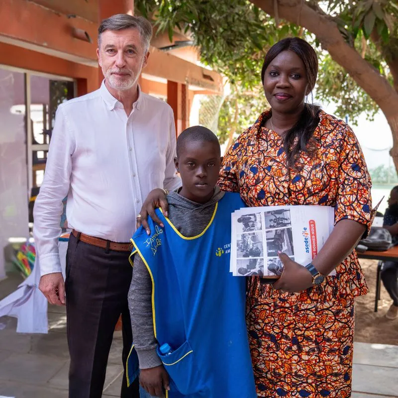 En 1995, il découvre le Sénégal, et surtout une femme hors du commun : Aminata Mbaye, fondatrice de l’ASEDEME, pionnière dans la défense d’enfants en situation de handicap intellectuel à une époque où le sujet est encore largement tabou.