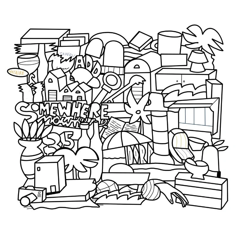 L’œuvre prendra le titre Somewhere, Nowhere, expression soufflée par Jérôme et immédiatement adoptée.