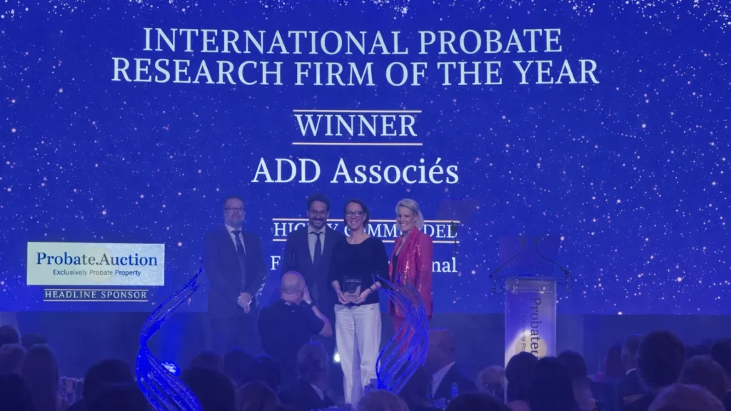 ADD Associés a été distingué Best International Probate Research Firm of the Year lors des Probate Industry Awards 2025.